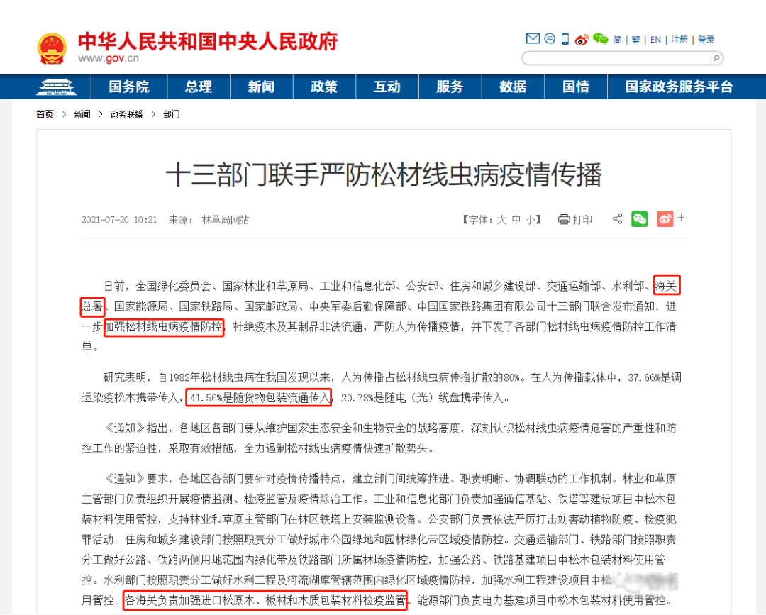 划重点:各海关负责加强进口松原木、板材和木质包装材料检疫监管。