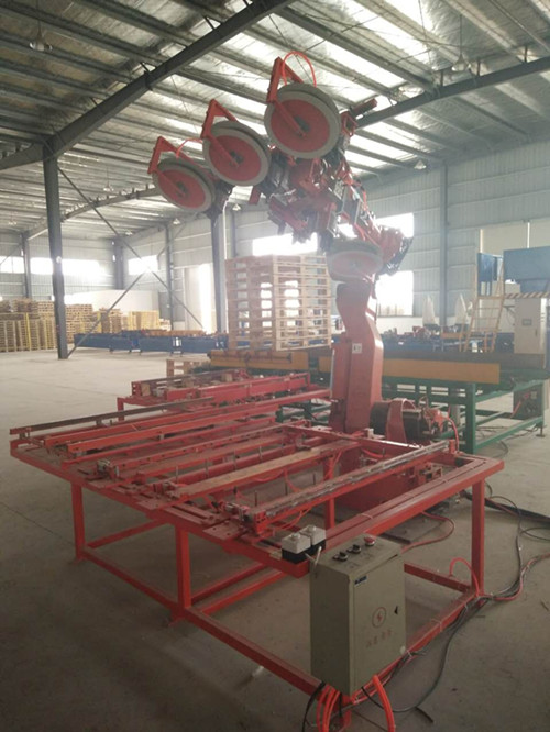 公司自主研发设计自动生产线托盘包装,包装和工业包装托盘机器人实现托盘生产自动化,规模化,规范化,填补行业空白。