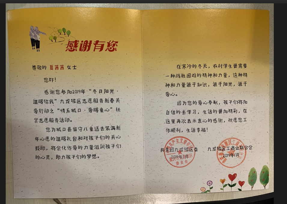 为落实中央和市委关于加强青少年关爱工作的决策部署,助力我区对口帮扶脱贫攻坚工作,根据《关于开展2019年“冬日阳光·温暖你我”青少年新春关爱行动的通知》(渝少办发〔2018〕28号)要求,澳门新葡京娱乐城包装副总经理夏茜茜代表公司赴城口革命老区,为那里的孩子送去一丝温暖。去帮助孩子们实现他们真挚的愿望。